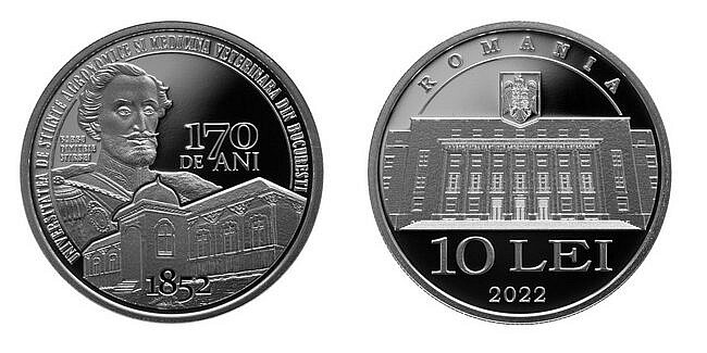 Banca Naţională a României (BNR) lansează o monedă din argint cu tema „170 de ani de la înfiinţarea Universităţii de Ştiinţe Agronomice şi Medicină Veterinară din Bucureşti”. Potrivit băncii, tirajul maxim pentru această monedă este de 5.000 de piese, prețul de vânzare al uneia este de 440 de lei (fără TVA), iar moneda va avea o valoare nominală de 10 lei.